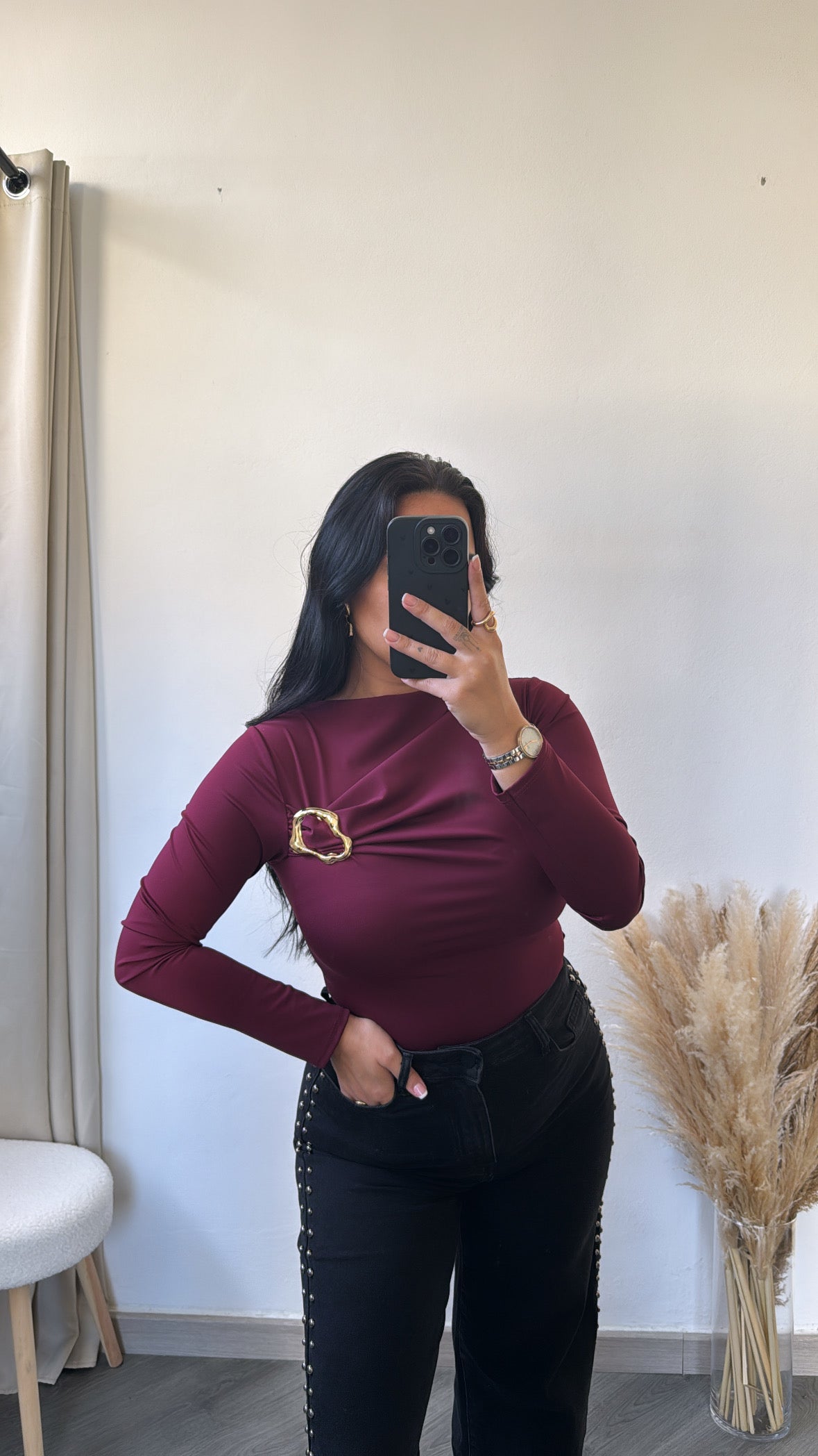 Destaque-se com este top elegante em tom bordô, ideal para compor looks sofisticados e modernos.