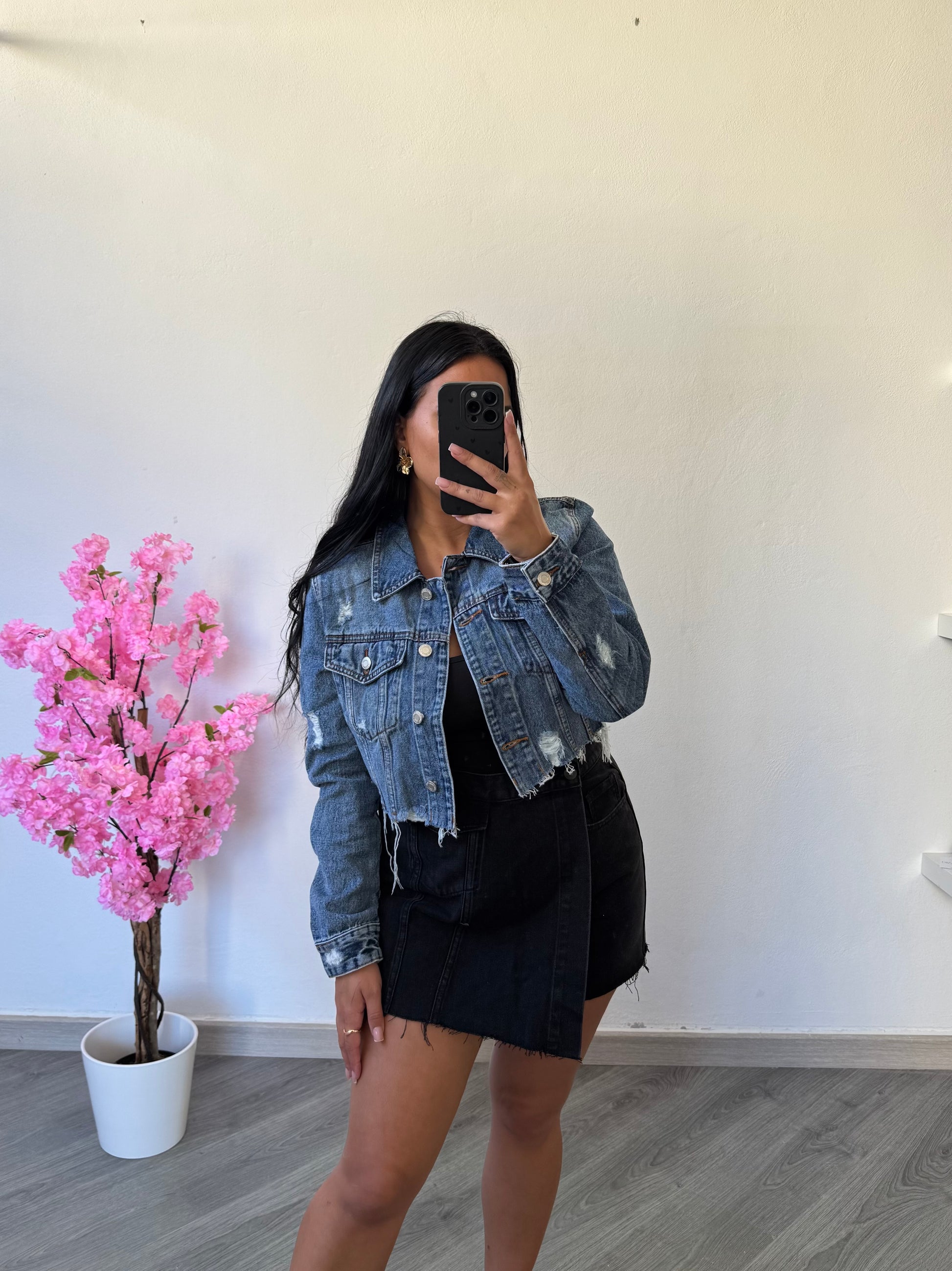 Casaco cropped denim